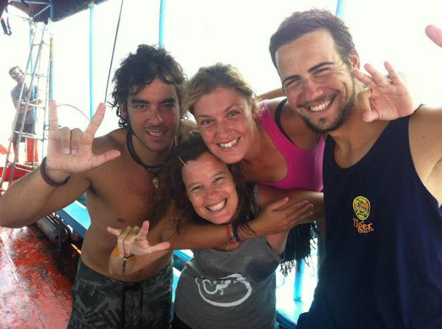 Amb la Marta i l'Ivan! Aquesta parella catalana que està fent la volta al món van començar bussejant amb nosaltres i estic segura que els canviarà part del viatge! Un plaer haver-vos conegut i estic segura que tornarem a bussejar junts!!